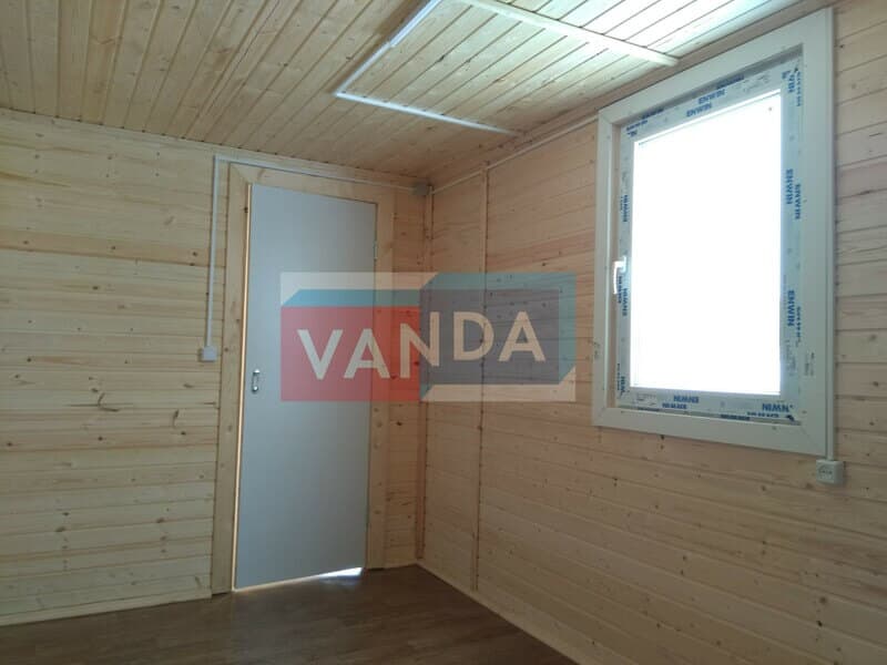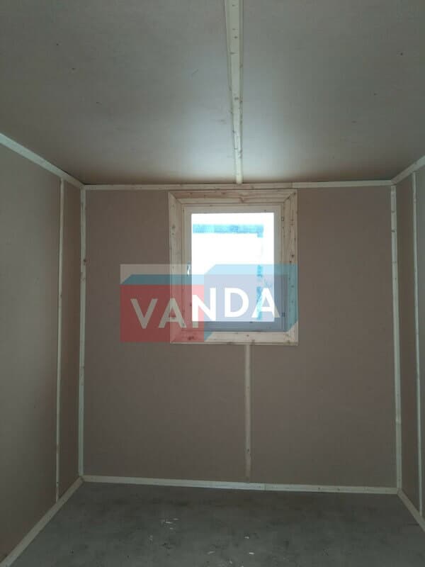 Блок контейнер металлический 4,0 x 2,4 - Вагонка ПВХ изготавливается из несущего каркаса (верхняя и нижняя обвязка): швеллер 100х50х3 мм., угловые стойки: сложно - гнутый угол 90х90х3 мм., крыша блок-контейнера: металл сварной 0,9-1 мм., качественная наружная отделка: оцинкованный профлист, внутренняя отделка стен: Вагонка ПВХ, внутренняя отделка потолка: Вагонка ПВХ, вспомогательный деревянный каркас (стены): брусок 40х75 мм., лаги пола: обрезная доска 40х100 мм., лаги потолка: обрезная доска 40х100 мм., выполнено утепление: Минеральная вата «ISOVER» – 50 мм. и пароизоляция: плёнка техническая, черновой пол состоит из: обрезная доска 20 мм. (2 сорт), чистовой пол покрыт: ДСП строительное 16 мм., отделка пола выполнена из качественных материалов. Контейнер комплектуется окнами: деревянное, двойное остекление 800х1000, входной дверью: ДГ 21-8 обшита снаружи оцинкованным листом, врезной замок и внутренними дверями: ДГ 21-8 (при наличии перегородки). Если в БК присутствуют перегородки, то для них используется: брусок 40х50 мм.
